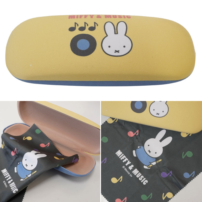 ミッフィーのお顔と音符とレコードのイラストの組み合わせが可愛いメガネケース。お手持ちのメガネやサングラスなど、幅広く使いやすいシンプルな形状。かわいいデザインのメガネクロスもついています☆