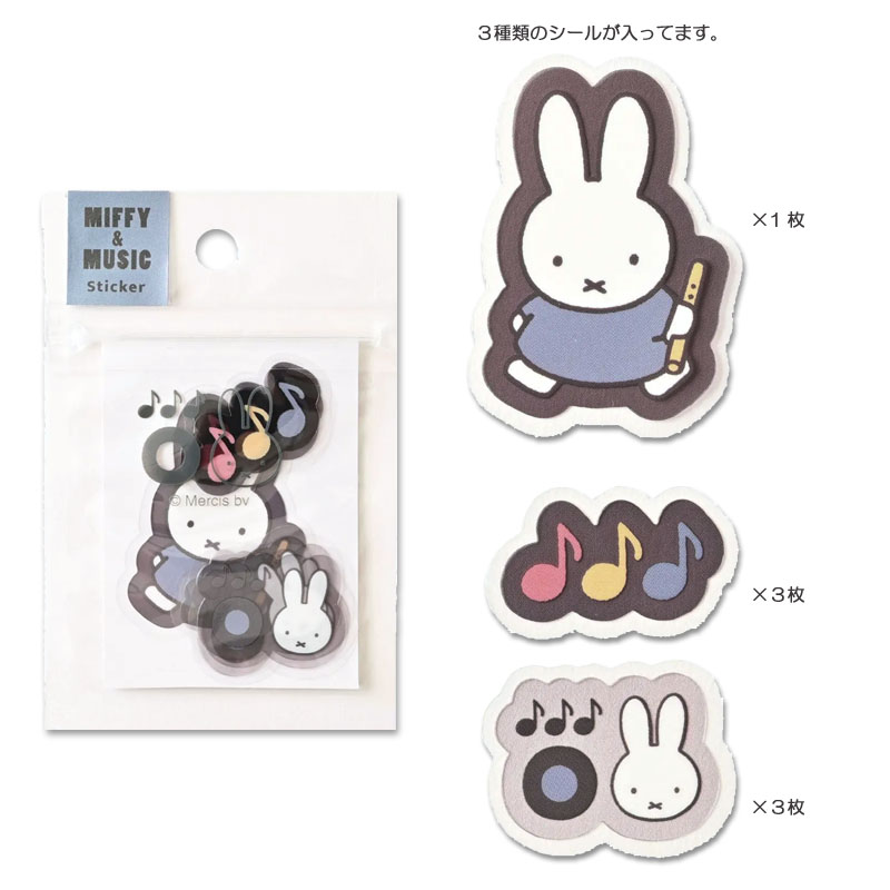 ミッフィーのシール4枚、音符のシール:3枚 計7枚のシールセット。