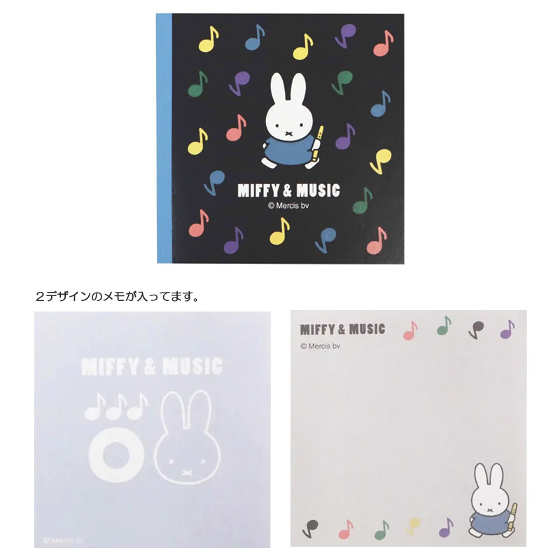 正方形の可愛いメモパッド。ミッフィーと音楽をデザインしたオシャレなメモパッドです。ちょっとしたメモやオフィスでの伝言など、あると便利なアイテム。かわいい2デザインのメモが入っているのも嬉しいですね。