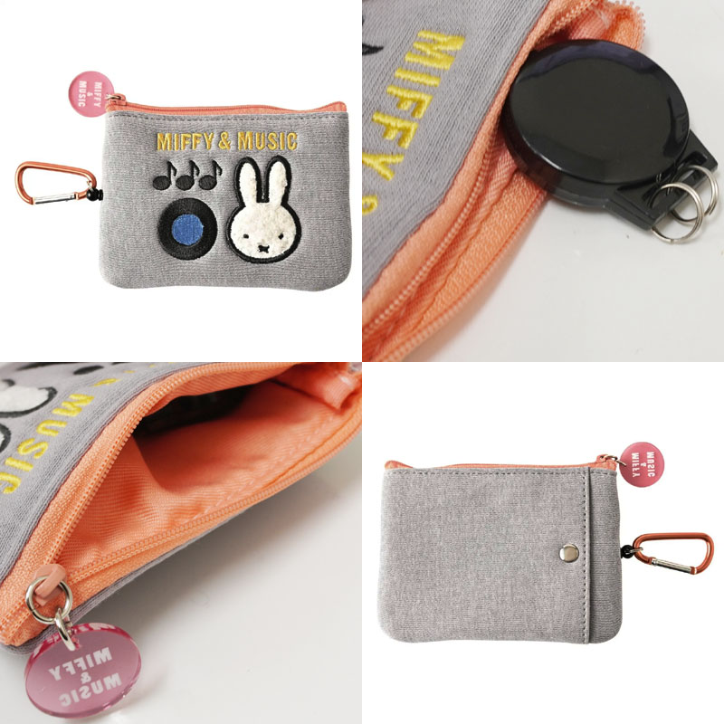 ミッフィーと音楽のイラストを組み合わせてデザインしたパスケース。ファスナーを開けてカードやコインなど、小物も入れられて、便利なパスケースです。コードリール仕様なのでバッグなどに取り付けたまま長く伸ばして使うことができます。色使いも落ち着いててとても使いやすいアイテムです。
