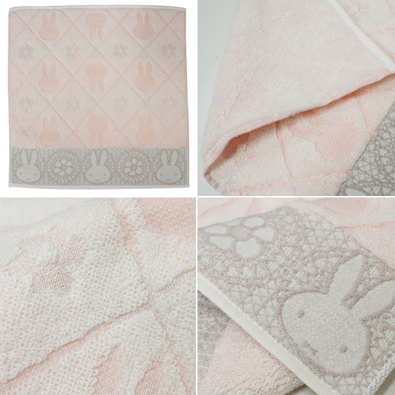 ミッフィーとレース柄のオシャレなデザイン。ハンカチ代わりに使いやすいサイズ感。