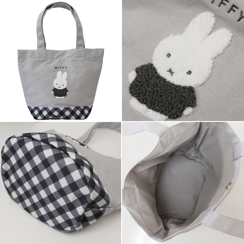 落ち着いたシックな色合いにダイアゴナルチェックとミッフィーフェイスがオシャレなトートバッグ。大きさもちょうど良くて、通勤や通学のサブバッグにおすすめです。