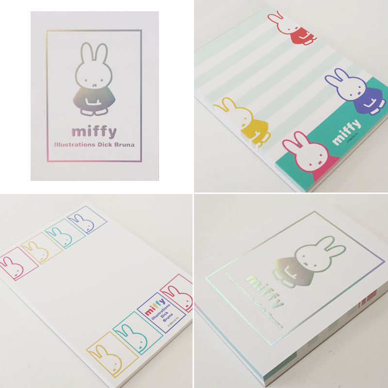 手の平サイズの可愛いメモパッド。ミッフィーを綺麗なオーロラカラーで表現したオシャレなメモパッドです。ちょっとしたメモやオフィスでの伝言など、あると便利なアイテム。かわいい2デザインのメモが入っているのも嬉しいですね。
