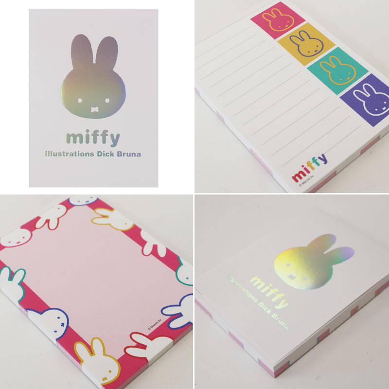 手の平サイズの可愛いメモパッド。ミッフィーを綺麗なオーロラカラーで表現したオシャレなメモパッドです。ちょっとしたメモやオフィスでの伝言など、あると便利なアイテム。かわいい2デザインのメモが入っているのも嬉しいですね。