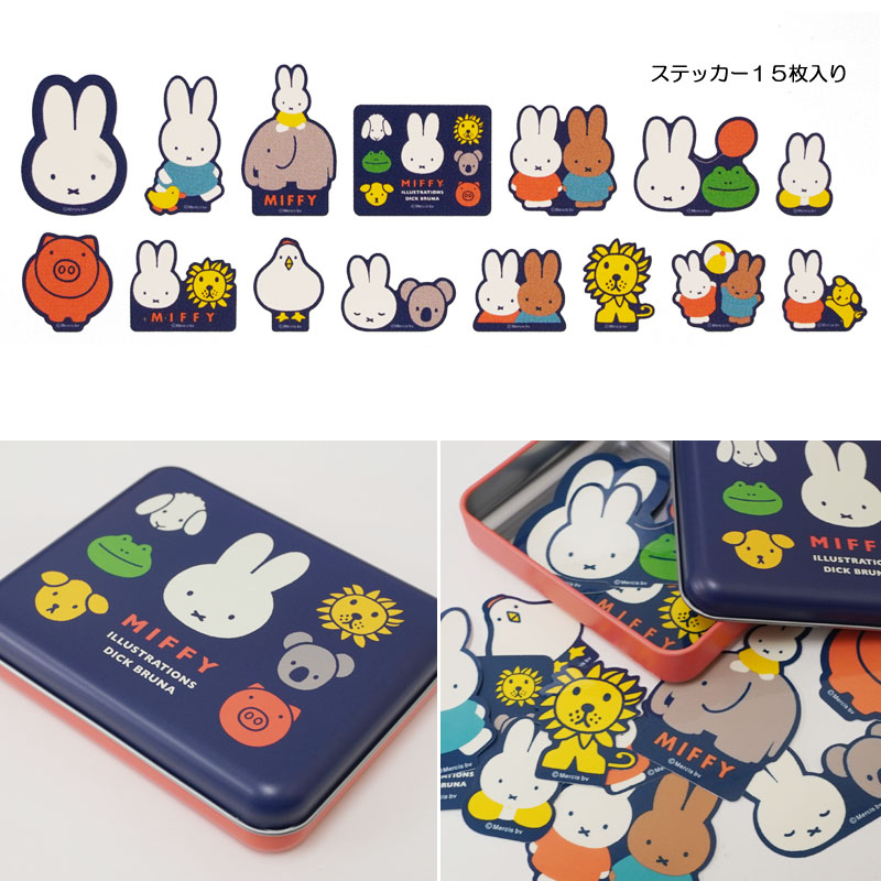 ミッフィーファンに嬉しい、可愛いなステッカーセットです。携帯や手帳に貼って楽しめるステッカーです。缶のケースに入ってて、ケースは小物入れに使える嬉しいセットです。