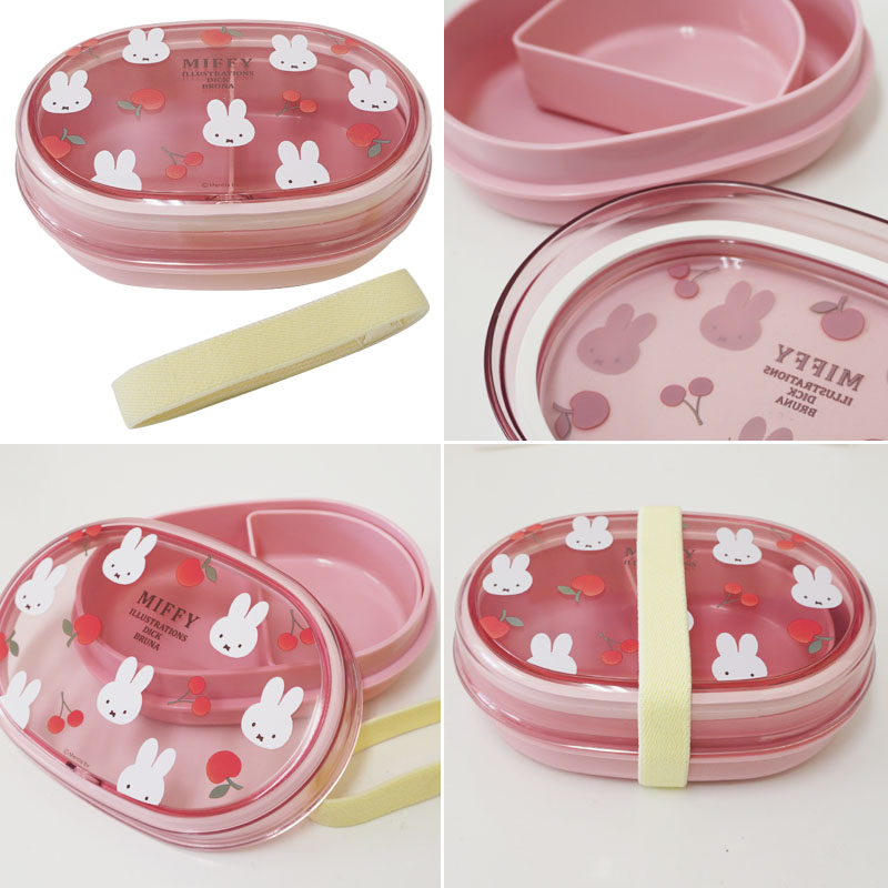 ミッフィーとフルーツのデザインのキュートな弁当箱。樹脂なのに保温庫で使用可能な嬉しい仕様。