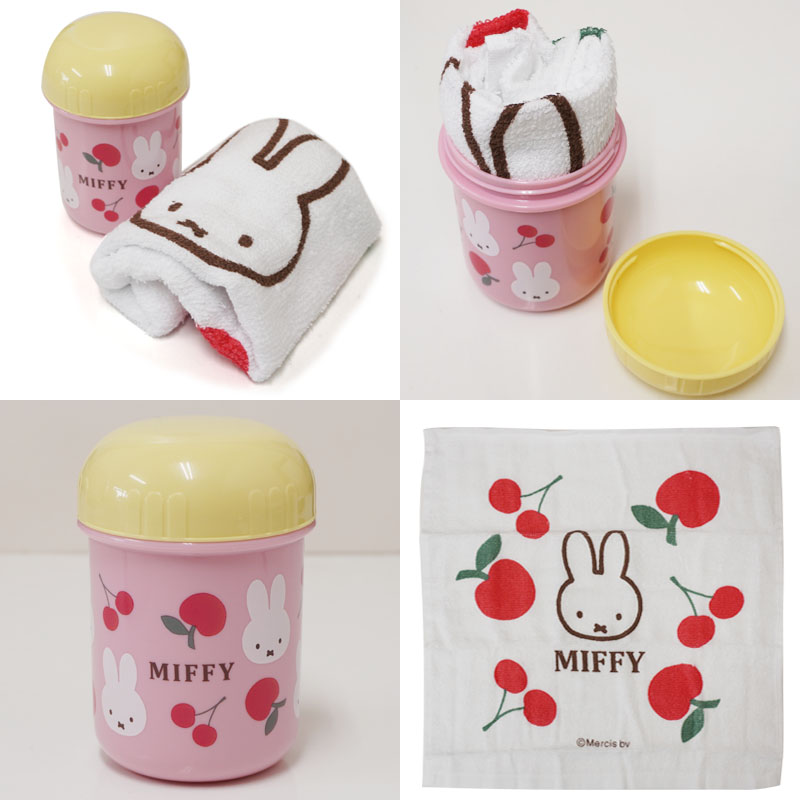 シンプルにミッフィーとフルーツのイラストが可愛いおしぼりセット。持ち運びに便利なケース付きなのでランチやレジャーなど多彩なシーンで活躍してくれそうです。