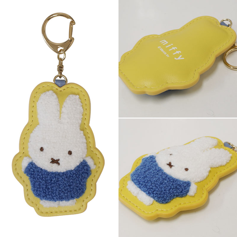 ぷっくりしたサガラ刺繍のミッフィーのマスコットが可愛いキーホルダー。落ち着いたイエローがオシャレです。