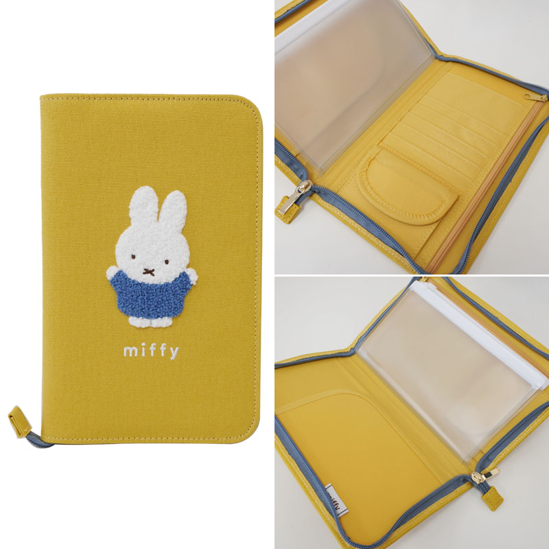 落ち着いたイエロー地にミッフィーがサガラ刺繍でデザインされた多機能のマルチポーチ。母子手帳や通帳、マスクなど大切な物をスマートに保管し持ち運びできる、便利なポーチです。