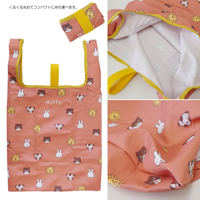 お買い物に便利なエコバッグ。若干小ぶりのサイズでコンビニのちょっとしたお買い物用に便利そうです。落ち着いたオレンジ地にミッフィーとアニマルが可愛いデザイン。小さく丸めてコンパクトに持ち運べるので旅先などでも活躍してくれそうです。バッグに常備したいアイテムですね。