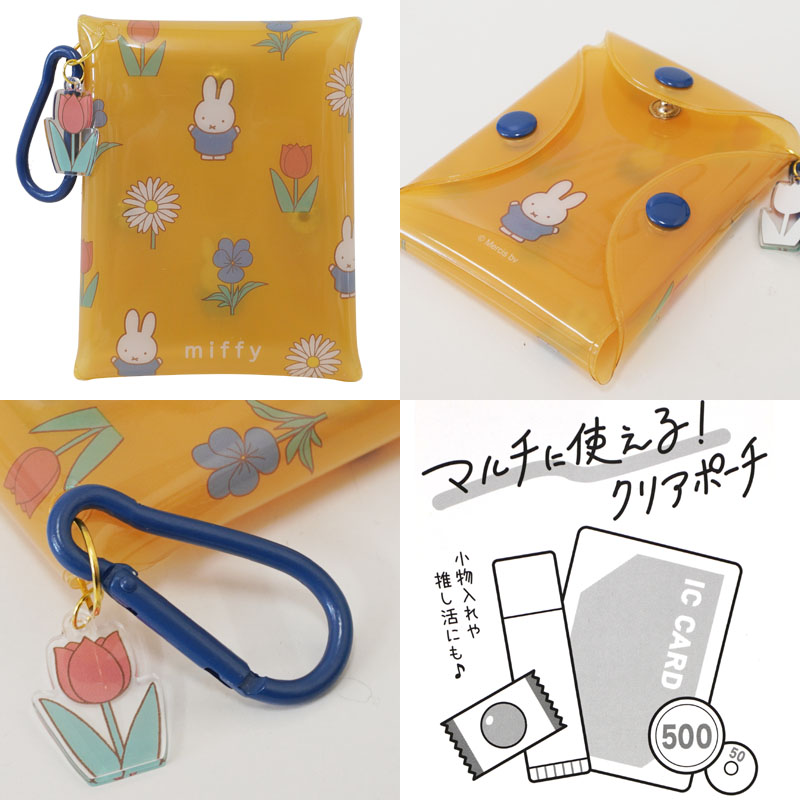 キーケースやコインケースとして、いろんな使い方が出来るマルチケース。落ち着いたイエローにミッフィーとお花の組み合わせがオシャレですね。ベルトループやバッグに取り付けられるカラビナ付きです。