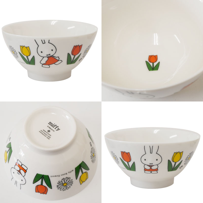ミッフィーとお花を並べたどこかレトロ感のあるオシャレなお茶碗です。とてもオシャレな絵柄で大人も子どもも使いやすいデザインに仕上げられています。