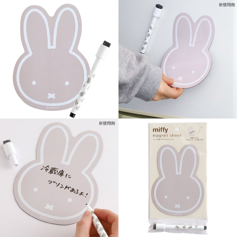 ミッフィーの顔型マグネットシートで冷蔵庫などの鉄製の壁に貼り付けて付属のペンでメッセージを書けるようになっています。