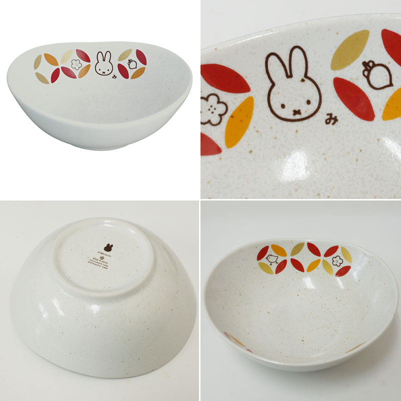 落ち着いた色使いの七宝模様にミッフィーのイラストを上品にデザインしたかわいい楕円形の小鉢。味わいを感じるいびつな形状が柔らかな和の雰囲気とマッチしています。手に馴染みやすい小ぶりなサイズです。