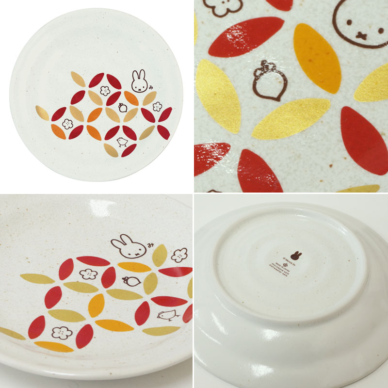 落ち着いた色使いの七宝模様にミッフィーのイラストを上品にデザインしたプレート。落ち着いた絵柄で大人も使いやすいデザインに仕上げられています。深さが少しあるのでサラダや副菜をのせるのにぴったり。銘々皿としてもいいですね。