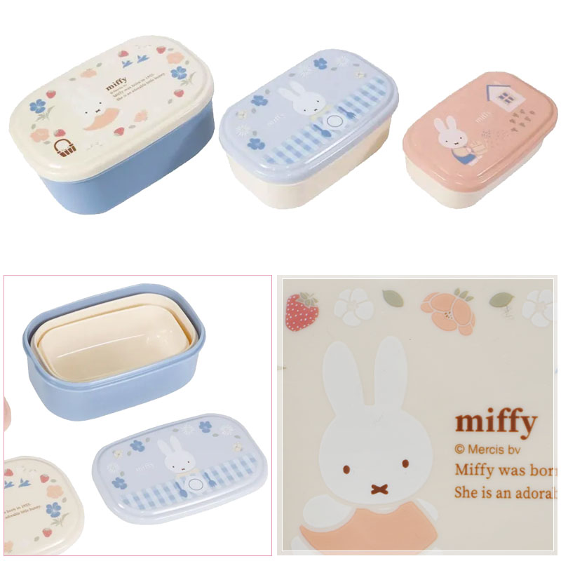 落ち着いた色合いにミッフィーのデザインがかわいいシールボックスセット☆ お弁当や保存ケースとして、様々な用途ができるアイテムです。サイズ、デザインが異なる3個がワンセットになっているのも魅力です。