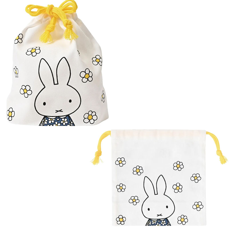 花柄ドレスのミッフィーとお花のシンプルなデザインがオシャレなコップ袋。ランチ時のカップを入れたり、小物の収納に便利なアイテムです。