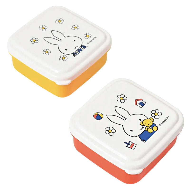 花柄ドレスのミッフィーとお花のイラストが嬉しいシールボックス2個セット。デザートや薬味入れ等にちょうど良い小さめサイズが良いですね。