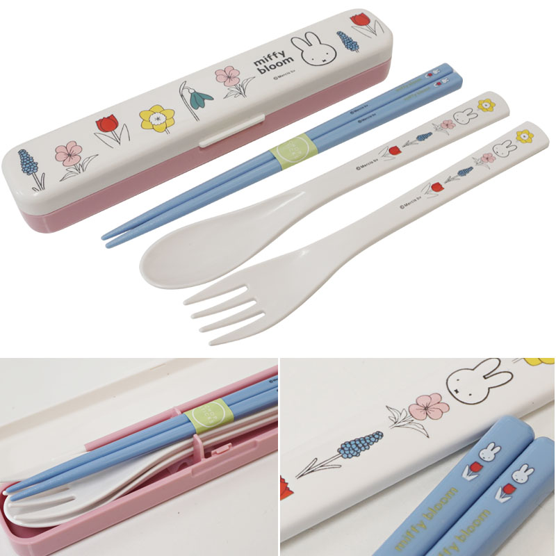 箸、フォーク、スプーンがセットになった、スリムタイプのトリオセットです。毎日のランチはもちろん、行楽シーンにもおすすめのアイテム。ミッフィーとお花のイラストがマッチしてとてもオシャレです。スリムに収納出来るので持ち運びもラクラクです☆