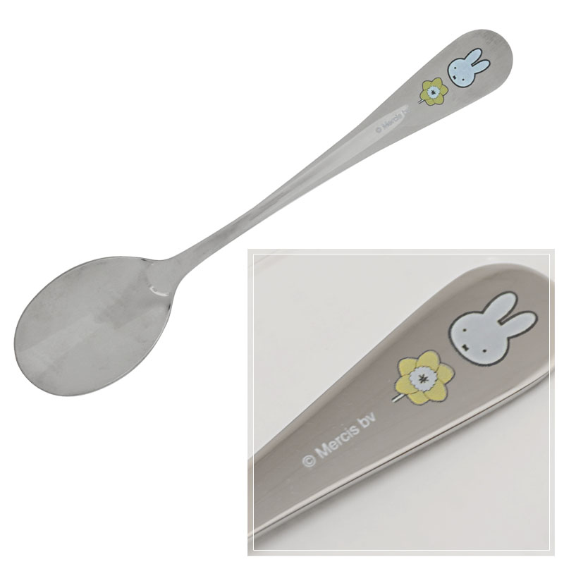 ミッフィーフェイスとお花のイラストのハンドル部分がかわいいスプーン。カレーなどを食べるのにちょうどよい大きめのサイズです。