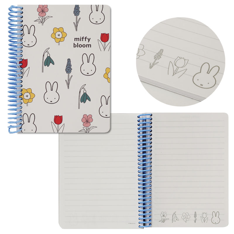 シンプルにミッフィーとお花のイラストで上品に仕上げられたオシャレなA6サイズリングノートです。内ページのイラストもかわいいです。カバンに入れて持ち歩きやすいサイズです。