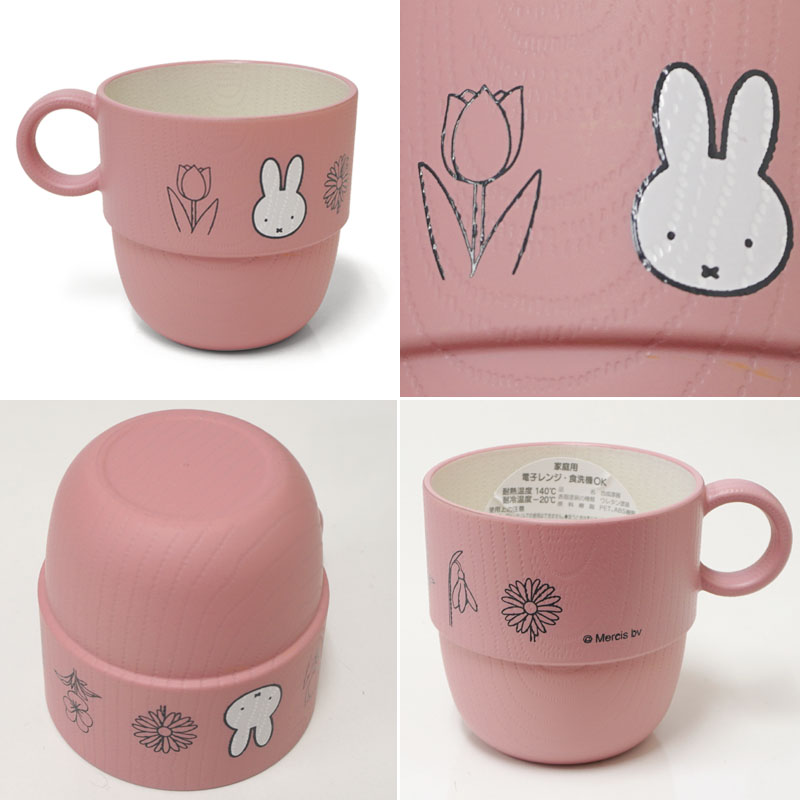 ミッフィーとお花のイラストで上品に仕上げられた可愛いミニカップ。積み重ねもできて、持ちやすいフォルムに軽くて丈夫な素材でできているのでキャンプやアウトドアなどにも使えそうです。レンジや食洗器に対応しているのも嬉しいですね。