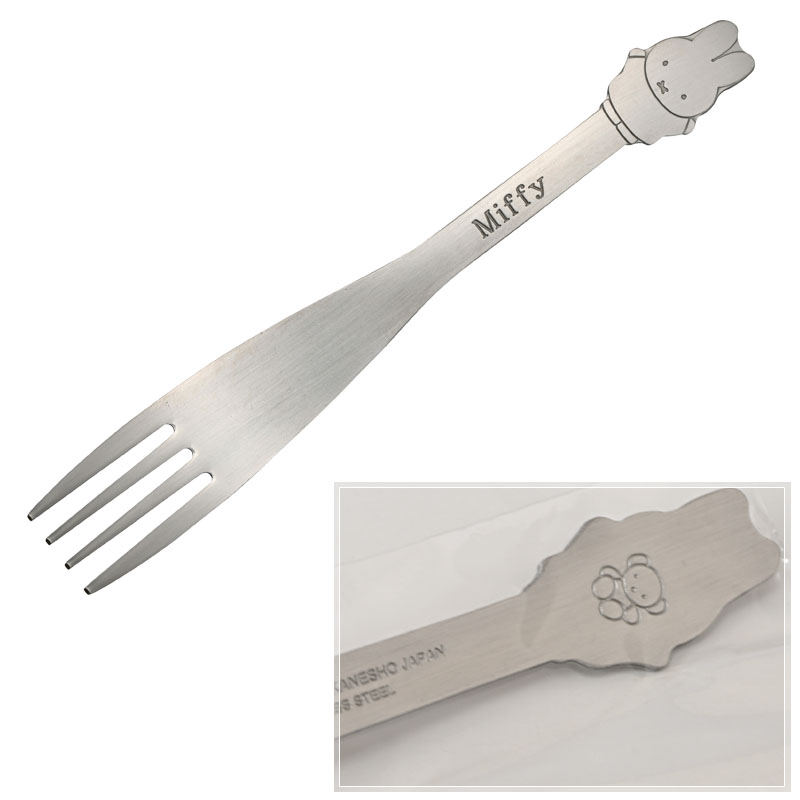 ハンドル部分がかわいいミッフィーのダイカットになっているフォーク。パスタやサラダなどを食べるのにちょうどよい大きめのサイズです。