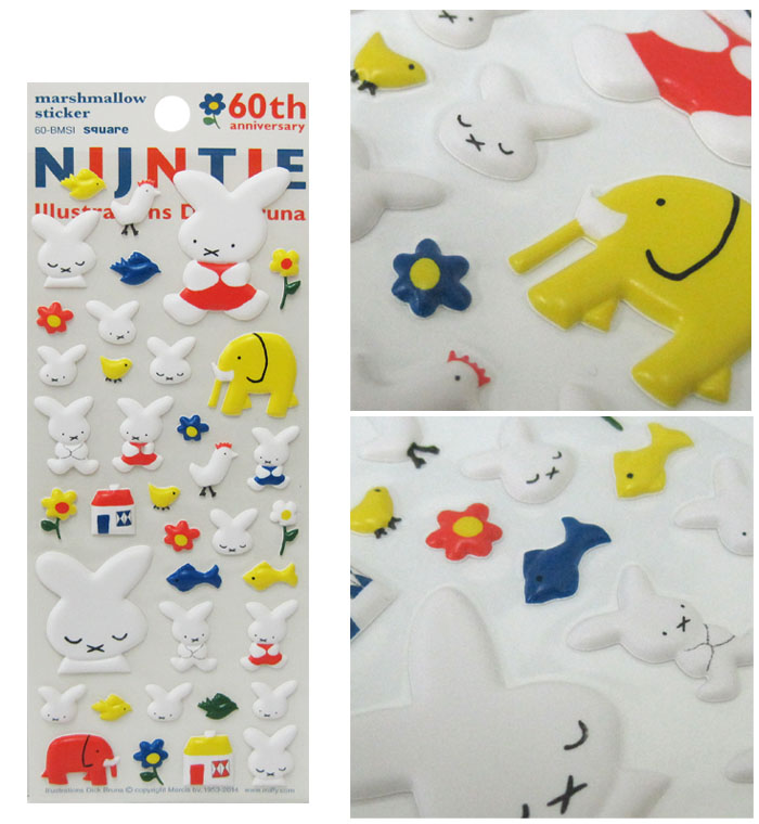 柔らかぷっくりのマシュマロシール。初期のミッフィーやアニマルたちがとってもかわいいです! ノートや小物のデコレーションにどうぞ☆