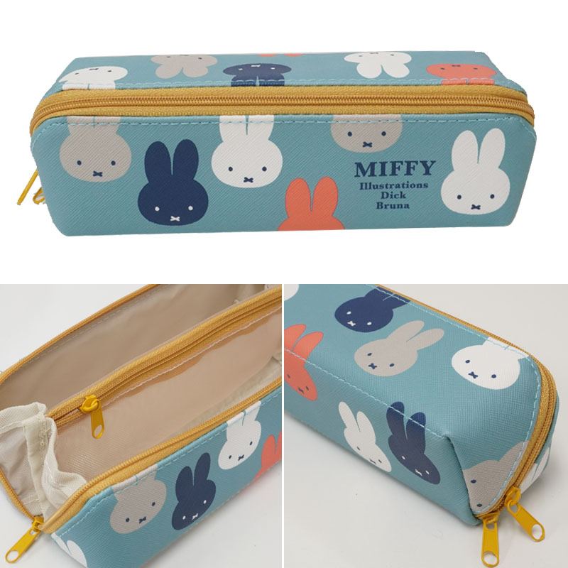 ミッフィーフェイスのイラスト使い・色使いがとてもオシャレ。可愛いのに凄く大人っぽいポーチです。大きく開いて2箇所の収納。トレーのように開くので中身が取り出しやすいです。