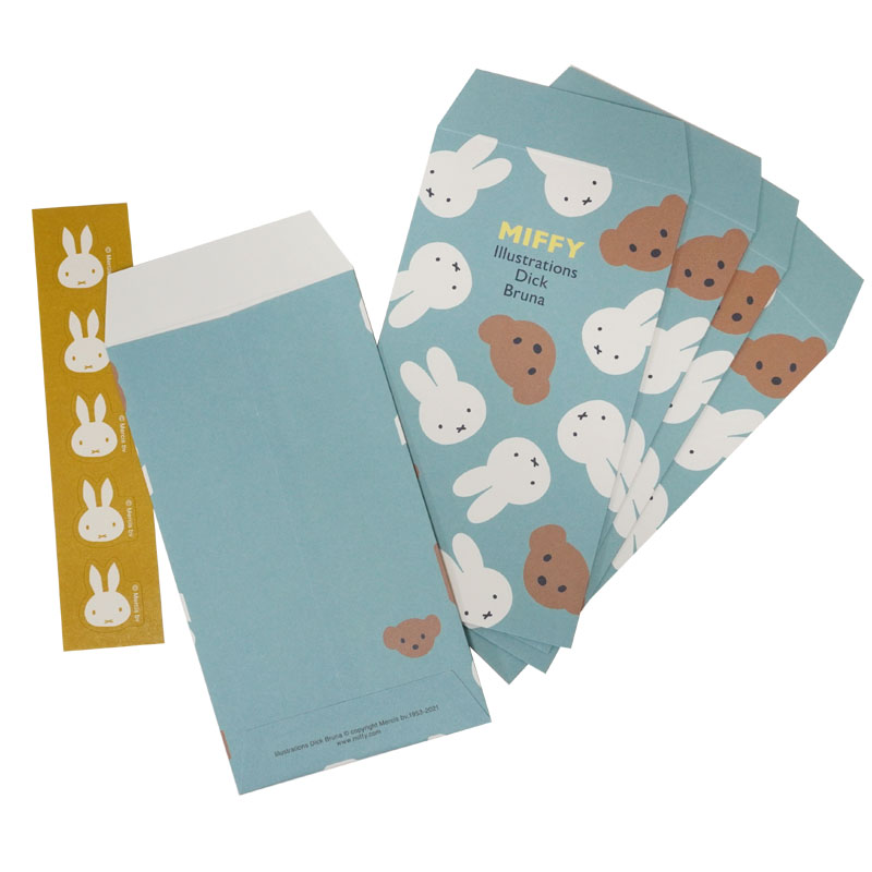 ミッフィーとくまちゃんのお顔が可愛いミニ封筒です。お年玉やお小遣いを渡す時などさまざまな用途で活躍しそうです。
